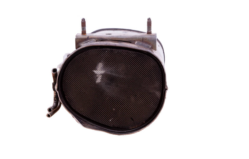 A DPF from a passenger car. The exhaust flow enters on the right, and exits on the left.